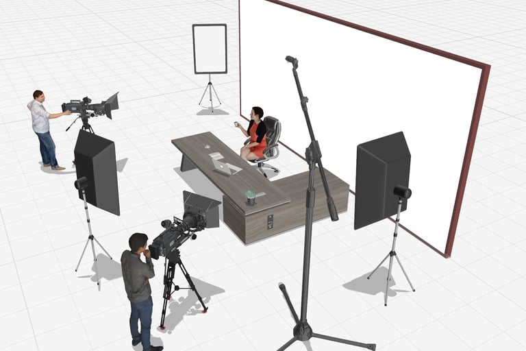 A ready-to-use space for multi-camera livestreams, interviews, and virtual events.