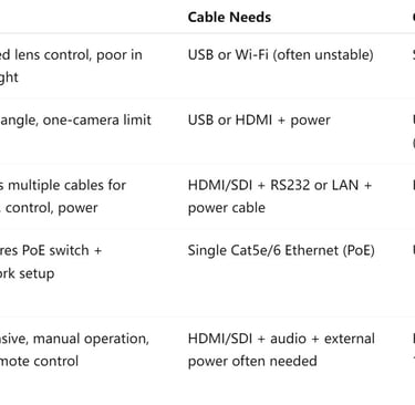 Non-NDI PTZ cameras require separate cables for video (HDMI or SDI), power, and control. They work well in simple systems but are less flexible and harder to expand.